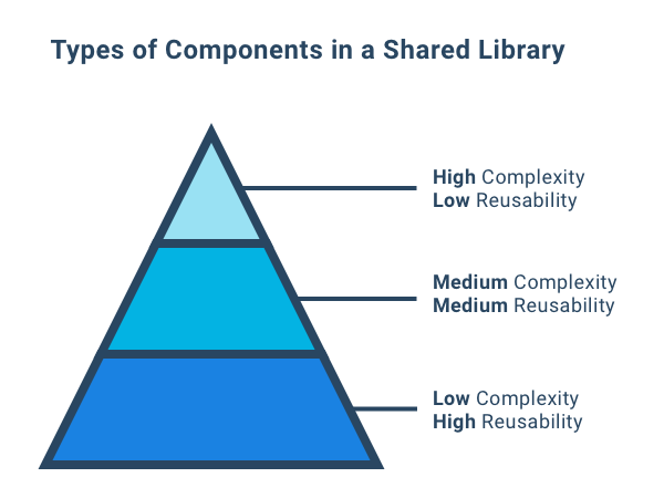 Components living in a shared library are inherently different from most application-specific components. While they may have different levels of reusability, they should be designed to look and behave consistently regardless of their application context. Also, they are generally created with reusability and extensibility in mind. I like to use this diagram to describe different component types: